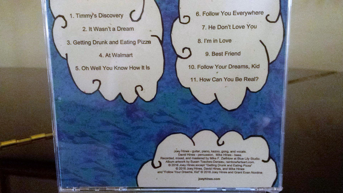 Joey Hines is a Las Vegas-based singer-songwriter. Equally inspired by history's great songwriters and the unconventional perspectives of outsider musicians, Hines blends a knack for memorable melodies with an imaginative and heartfelt lyrical style. Listeners might be reminded of the unfiltered emotion of Daniel Johnston and the eloquent rhymes of The Magnetic Fields. ... more